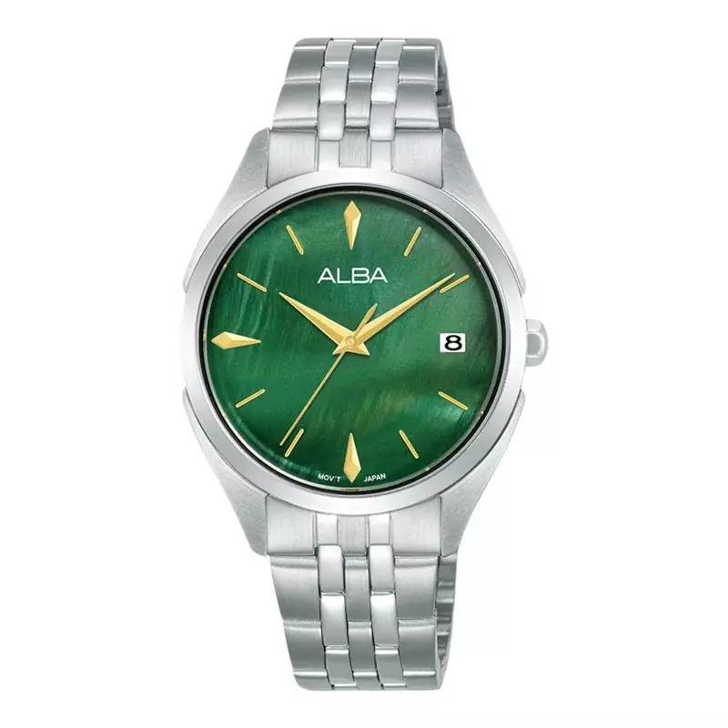 Jam Tangan Wanita Alba Fashion AG8P37X1 Ladies Cutie Green MOP Dial Stainless Steel Strap