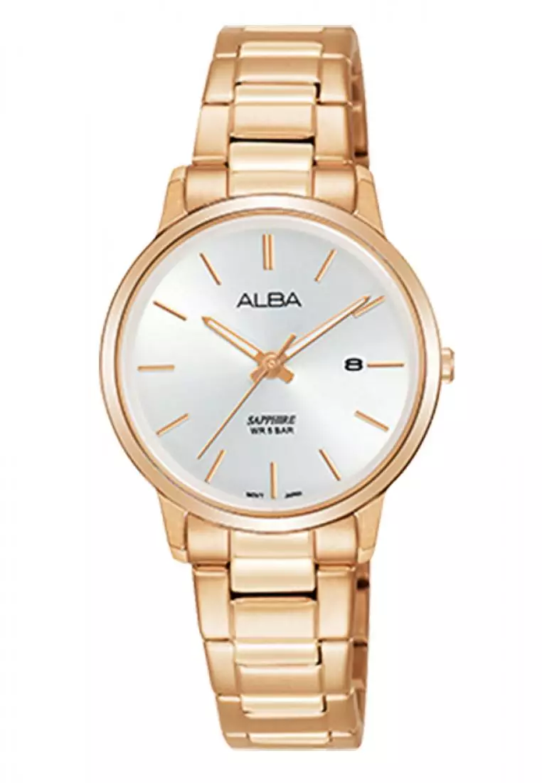 Jam Tangan Wanita Alba Original Garansi Resmi AH7R46 AH7R46X1 Strap Stainless Steel Rose Gold
