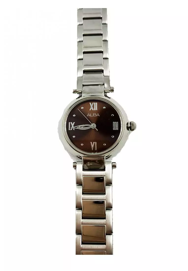 Jam Tangan Wanita Alba Original Garansi Resmi ARSY03 ARSY03X1 Strap Stainless Steel Silver Brown Dial Angka Romawi