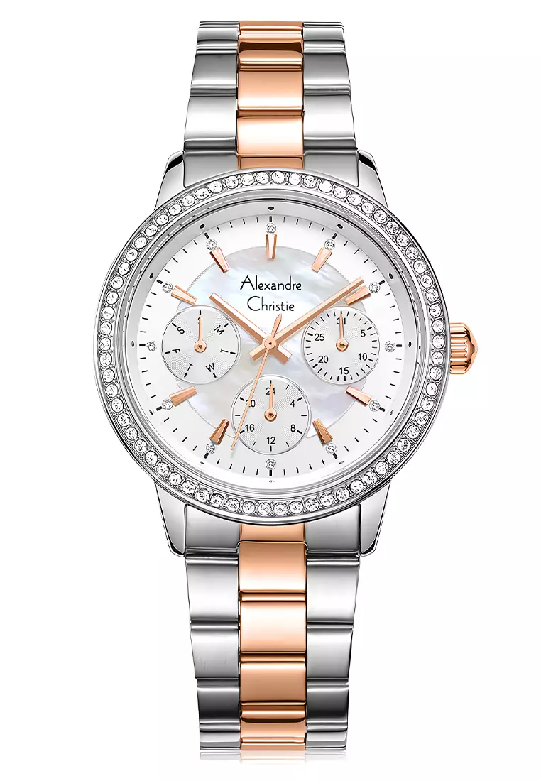 Alexandre Christie 2A53 BFBTRSL - Jam Tangan Analog Wanita - Silver Rosegold Stainless Steel