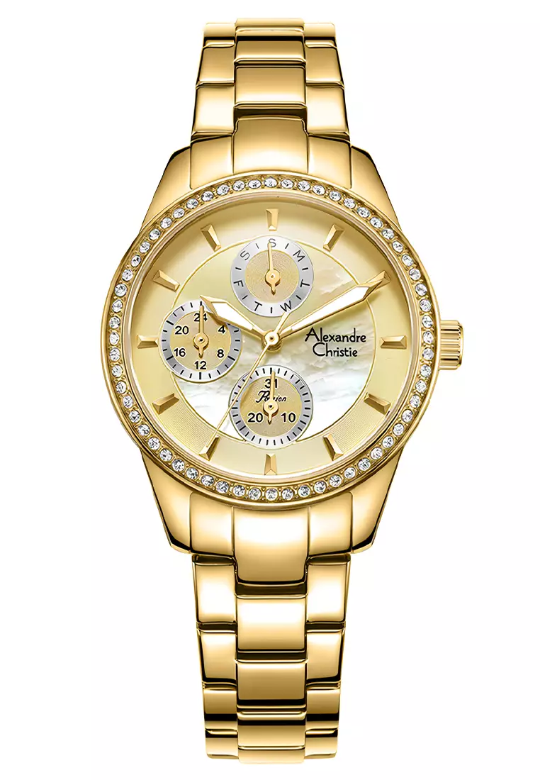 Alexandre Christie 2A89 BFBGPIV - Jam Tangan Chronograph Wanita - Gold - Stainless Steel