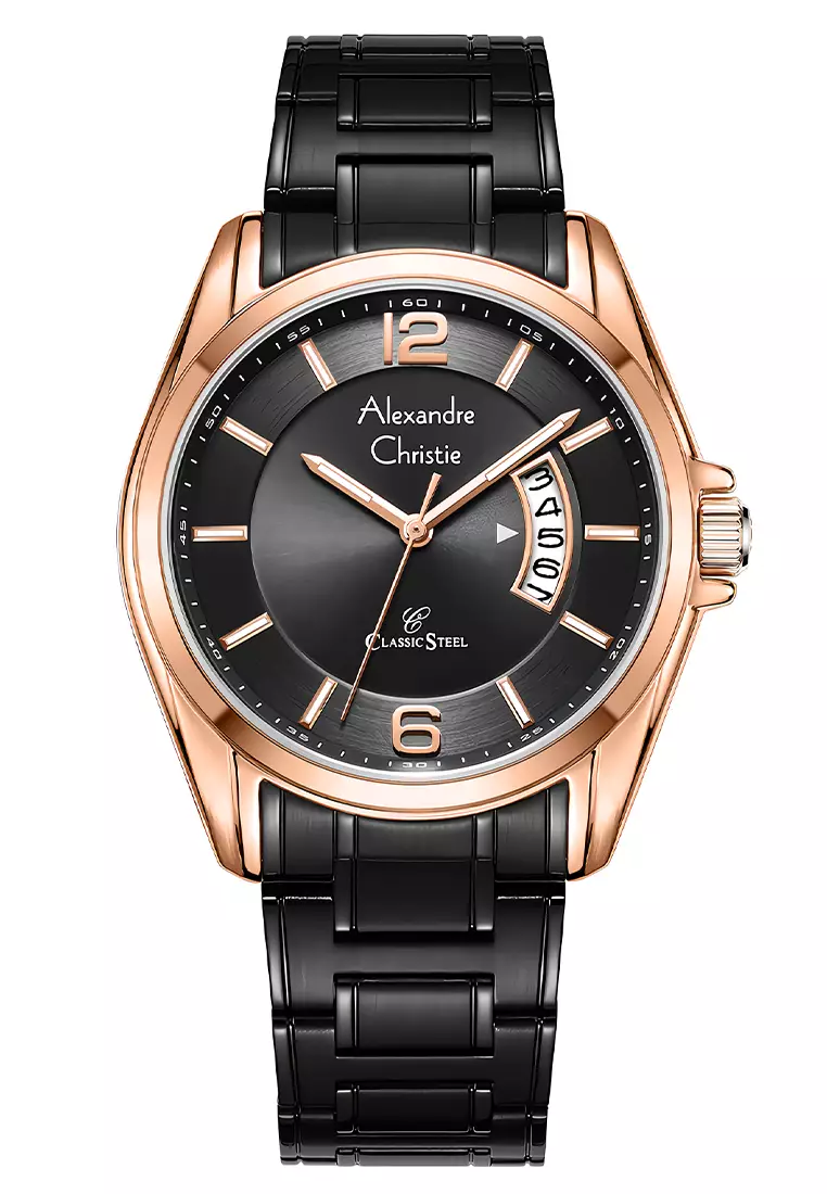Alexandre Christie 8684 MDBBRBA - Jam Tangan Analog Pria - Rosegold Black - Stainless Steel