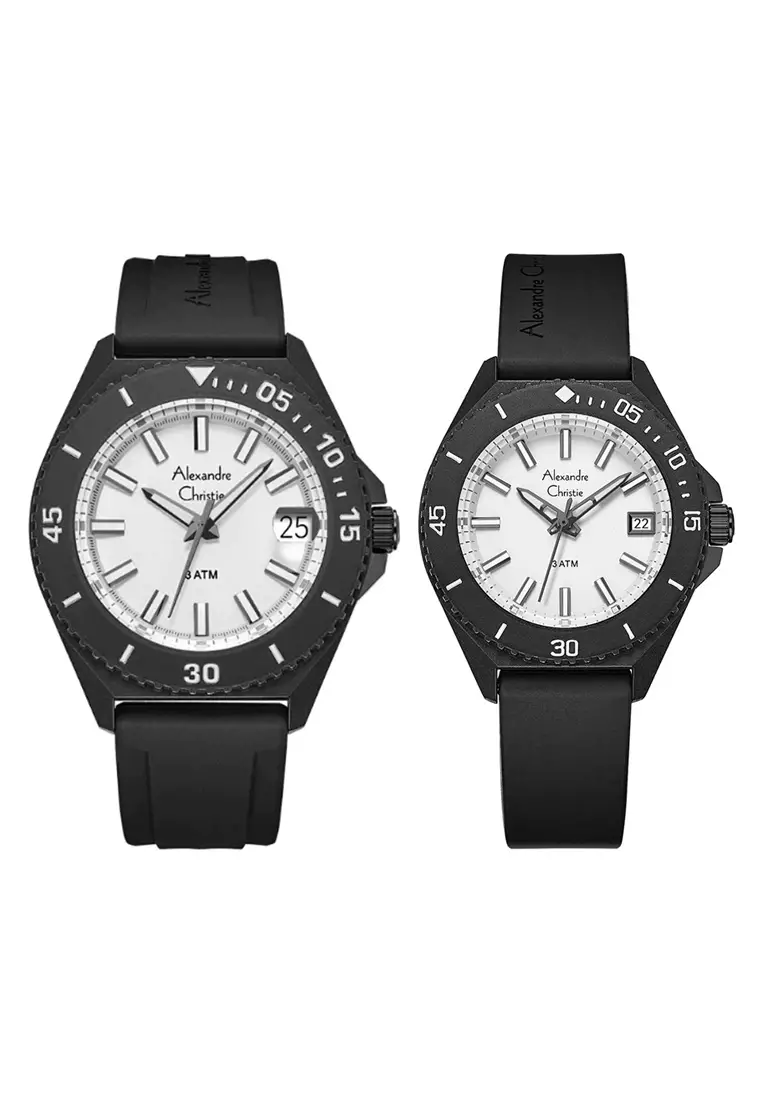 Alexandre Christie AC 8693 MDRIPSL & AC 8693 LDRIPSL Jam Tangan Couple Rubber Strap