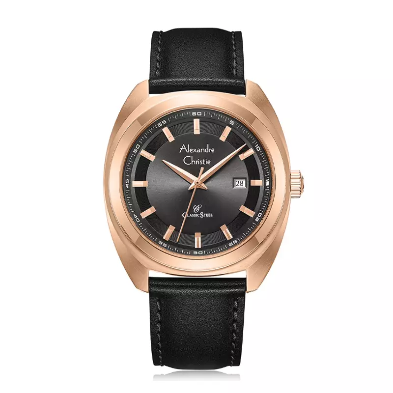 Alexandre Christie AC 8702 Rosegold Black Leather Man MDLRGDG