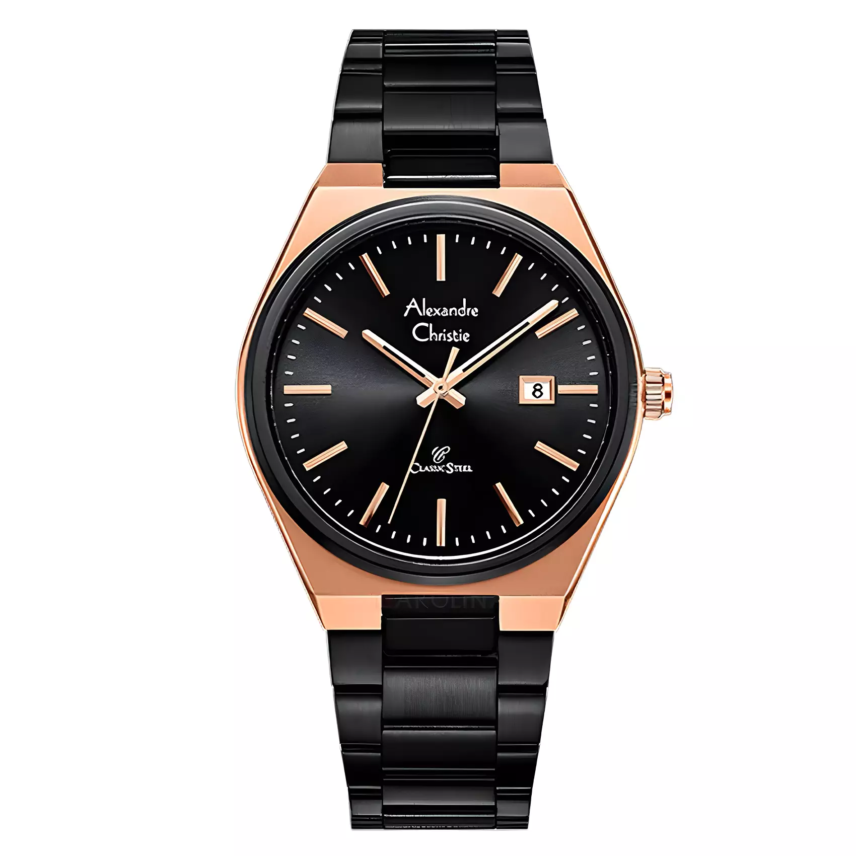 Alexandre Christie Classic Steel - Jam Tangan Analog Pria - Black Rose Gold - All Stainless Steel - 8713 MDFBRBA