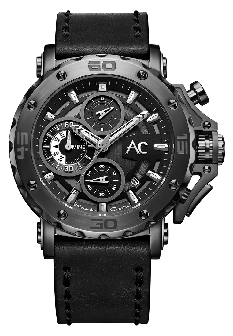 Alexandre Christie Collection - Jam Tangan Pria - Black - Leather Strap - 9205 MCLEPBA