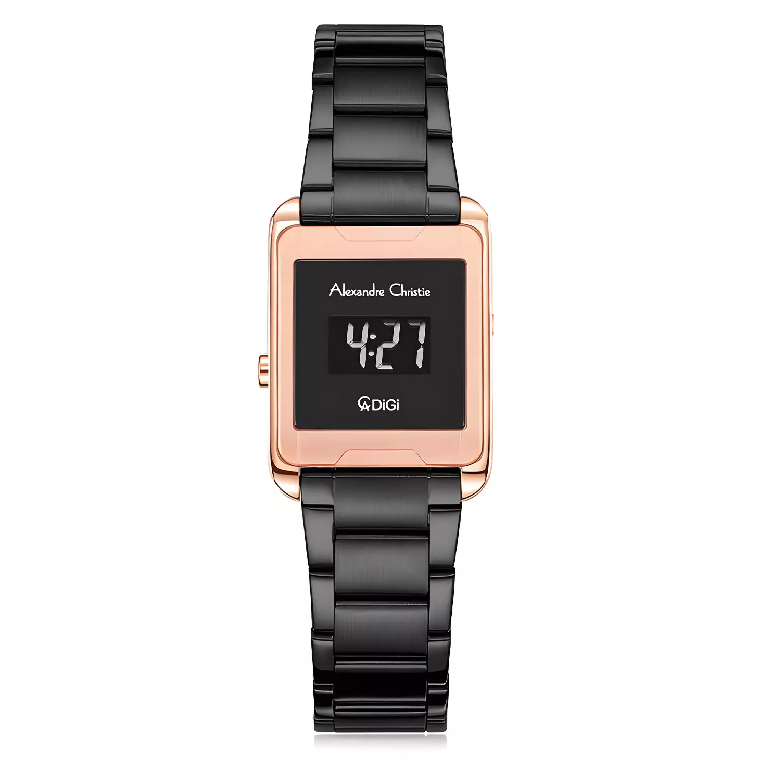 Alexandre Christie DiGi - Jam Tangan Digital Wanita - Rosegold Black Stainless Steel - 9499 HBBRBA