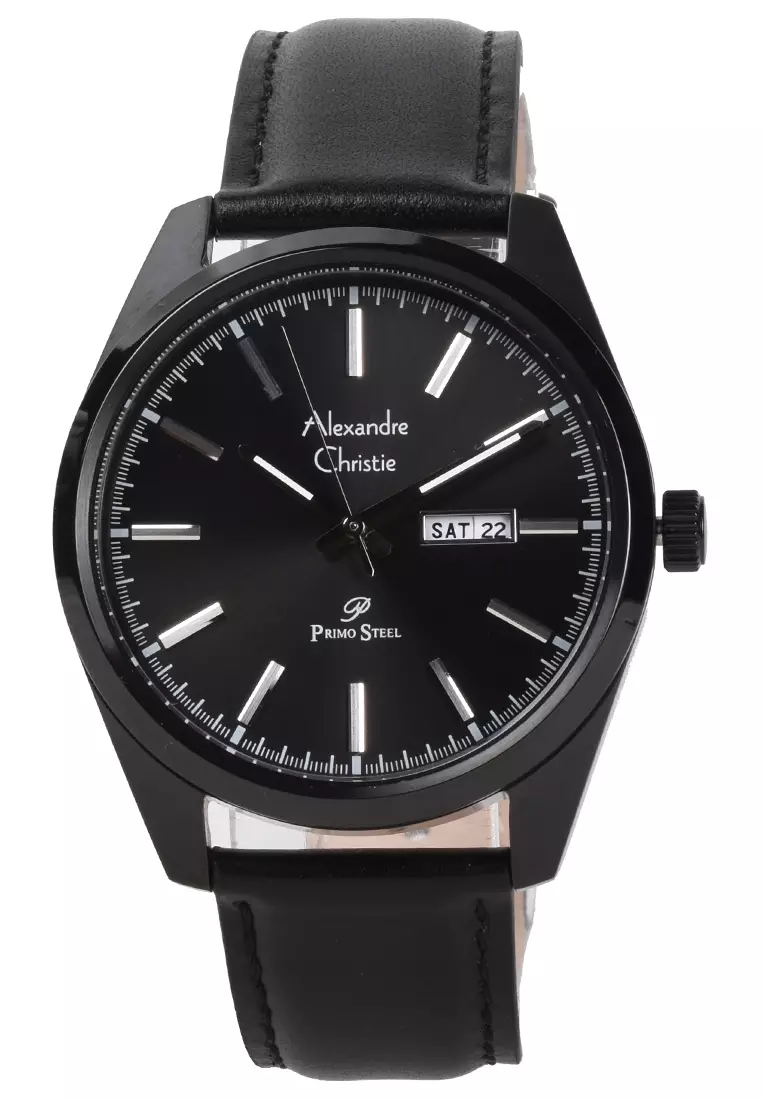 Alexandre Christie - Jam Tangan Analog Pria - Black Case Black Leather Strap - 1025MELIPBA
