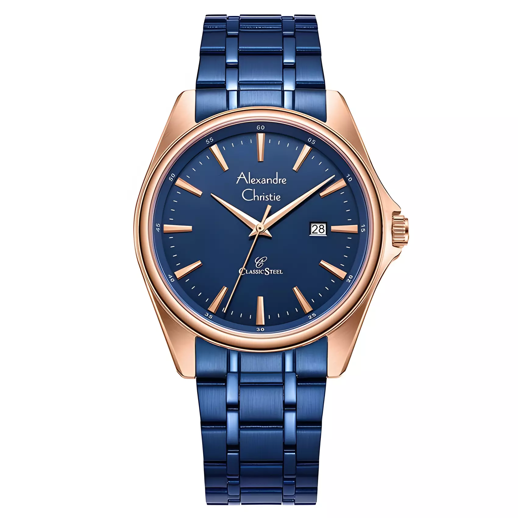 Alexandre Christie - Jam Tangan Analog Pria - Blue Rose Gold - Stainless Steel - 8661 MDBURBU