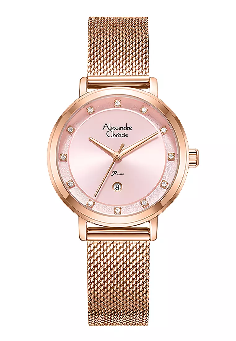 Alexandre Christie - Jam Tangan Analog Wanita - Rosegold Pink Dial Stainless Steel - 2B46LDBRGPN