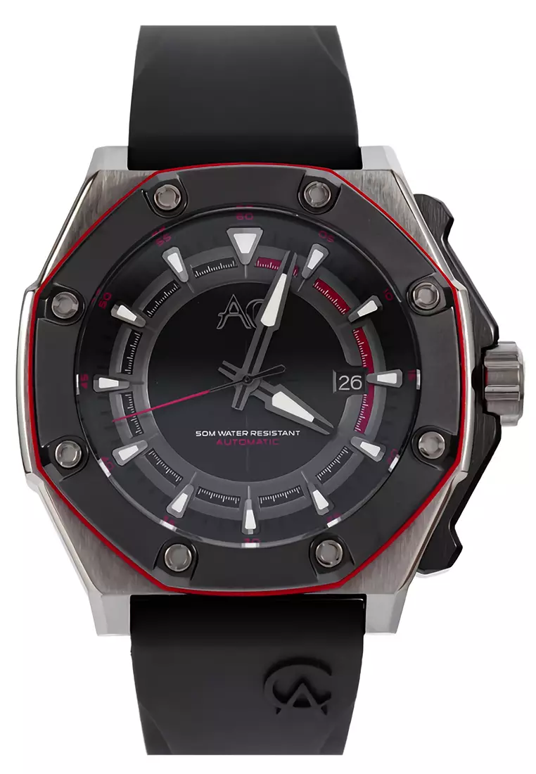 Alexandre Christie - Jam Tangan Automatic Pria - Black - Rubber Strap - 9601 MAREPBARE
