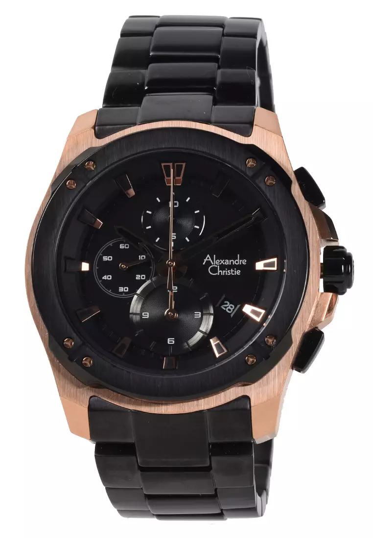 Alexandre Christie - Jam Tangan Chronograph Pria - Rosegold - Black Stainless Steel Bracelet - 6595 MCBBRBA