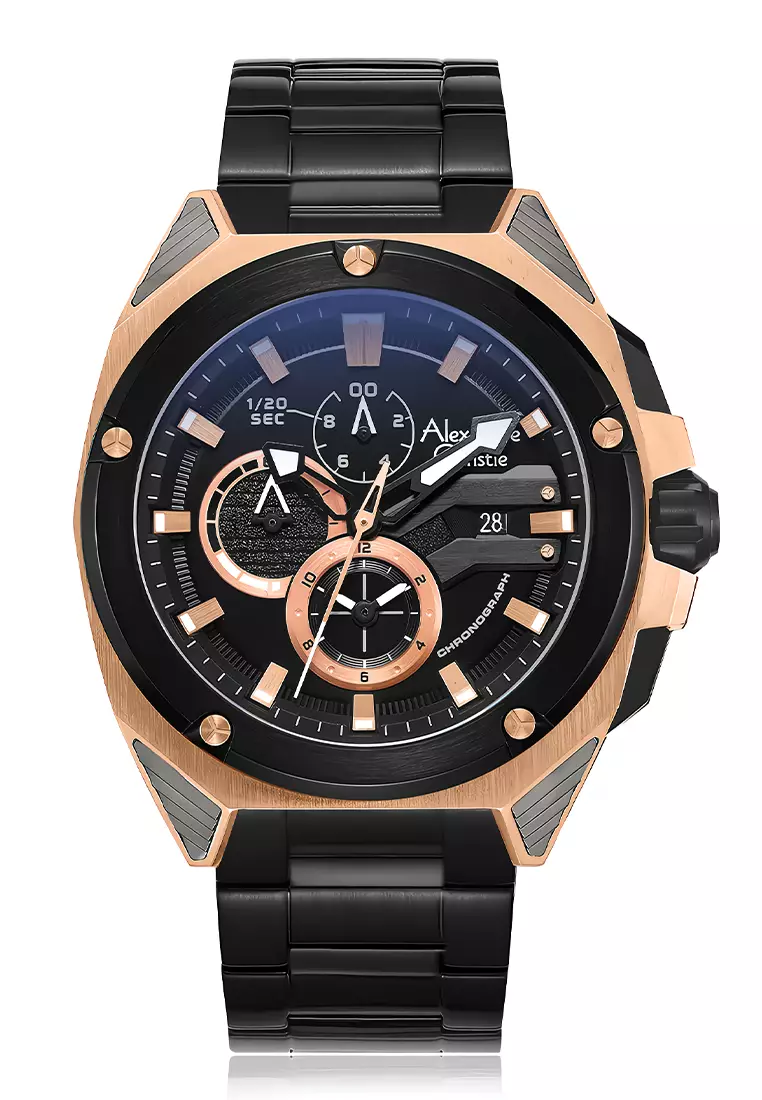Alexandre Christie - Jam Tangan Cronograph Pria - Black Dial - All Stainless Steel - 6624MCBBRBA