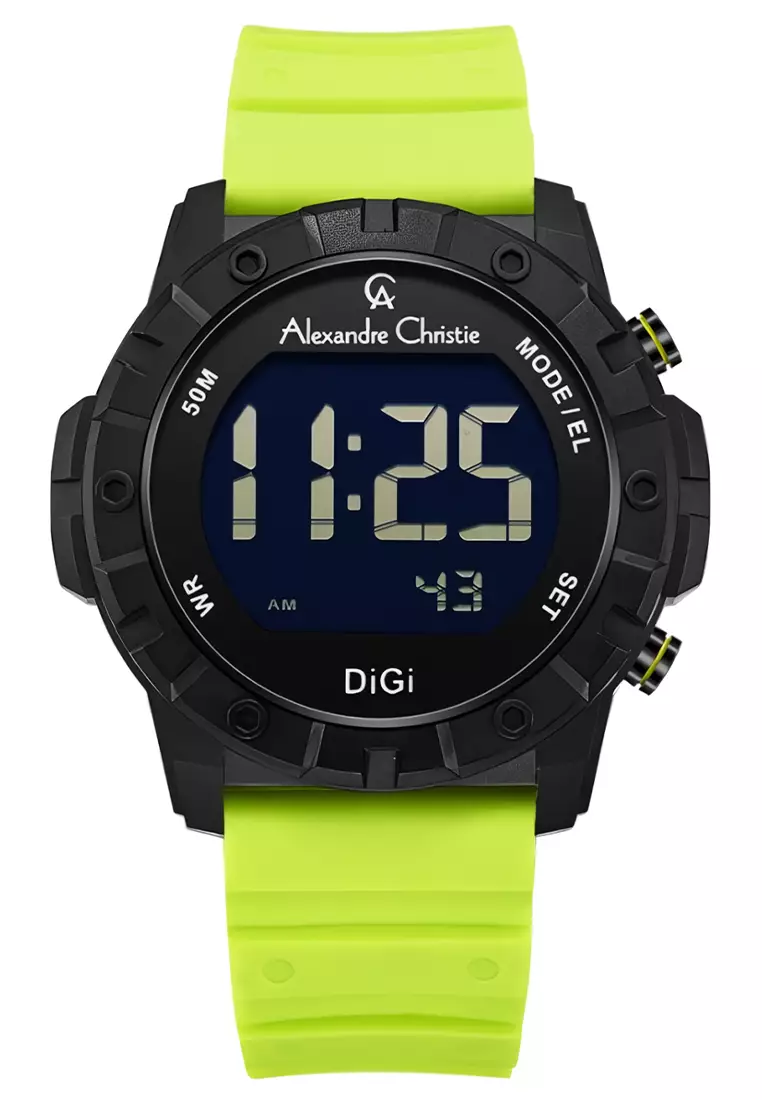 Alexandre Christie - Jam Tangan Digital Pria - Black - Green Rubber Strap - 9364 MHRIPBALE