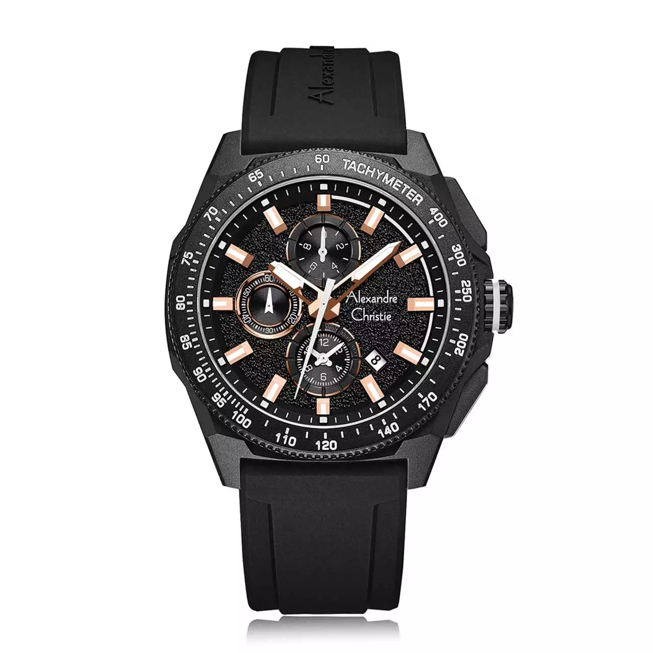 Alexandre Christie Jam Tangan Pria - Black Rosegold - Rubber - 6688 MCRIPBARG
