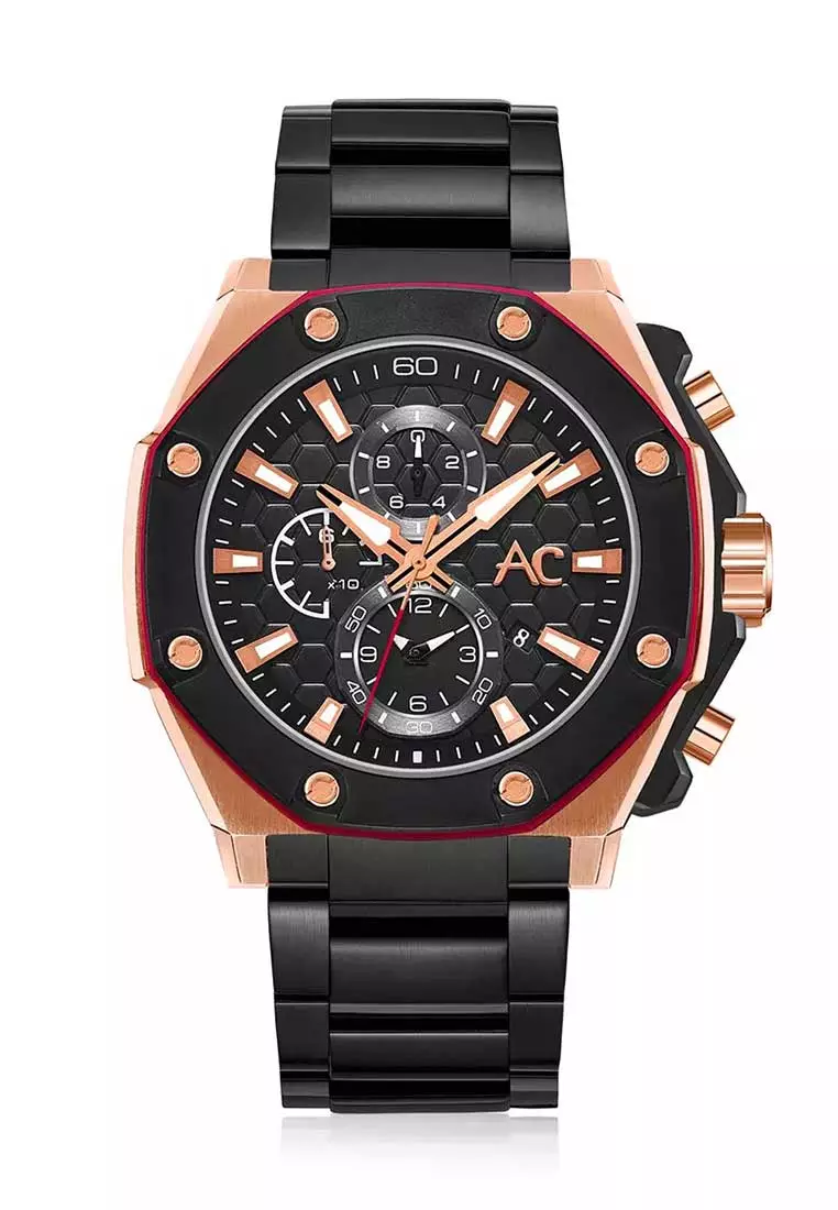 Alexandre Christie Jam Tangan Pria - Black Rosegold - Stainless Steel - 9601 MCBBRBA