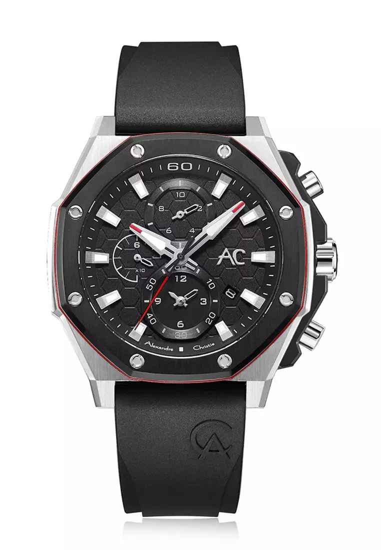 Alexandre Christie Jam Tangan Pria - Black Silver - Rubber Strap - 9601 GCRTBBARE