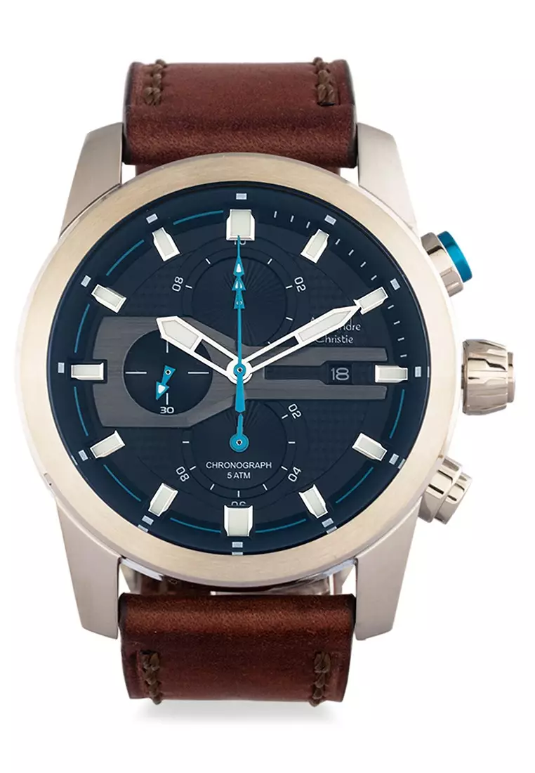 Alexandre Christie Jam Tangan Pria - Brown Silver Blue - Leather Strap - 6562 MCLSSBABU