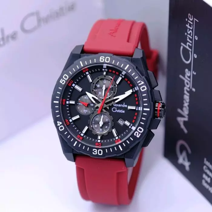 Alexandre Christie Jam Tangan Pria - Red Black - Rubber - 6689 MCRIPBARE