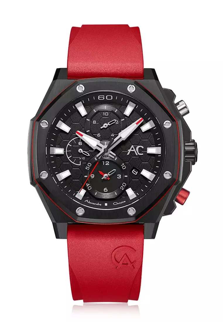 Alexandre Christie Jam Tangan Pria - Red Black - Rubber Strap - 9601 GCRIPBARE