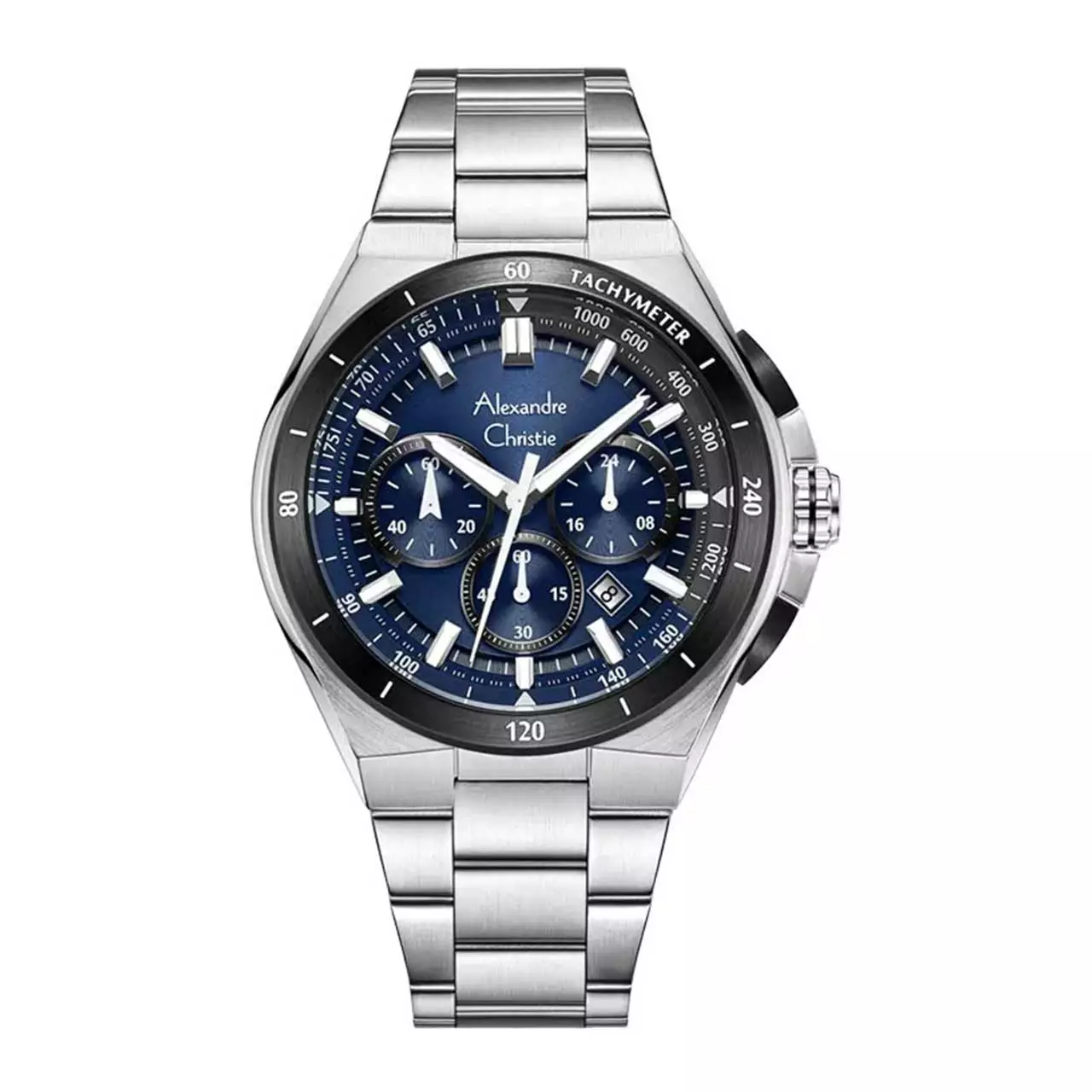 Alexandre Christie Jam Tangan Pria - Silver Black Blue - Stainless Steel - 6691 MCFTBBU