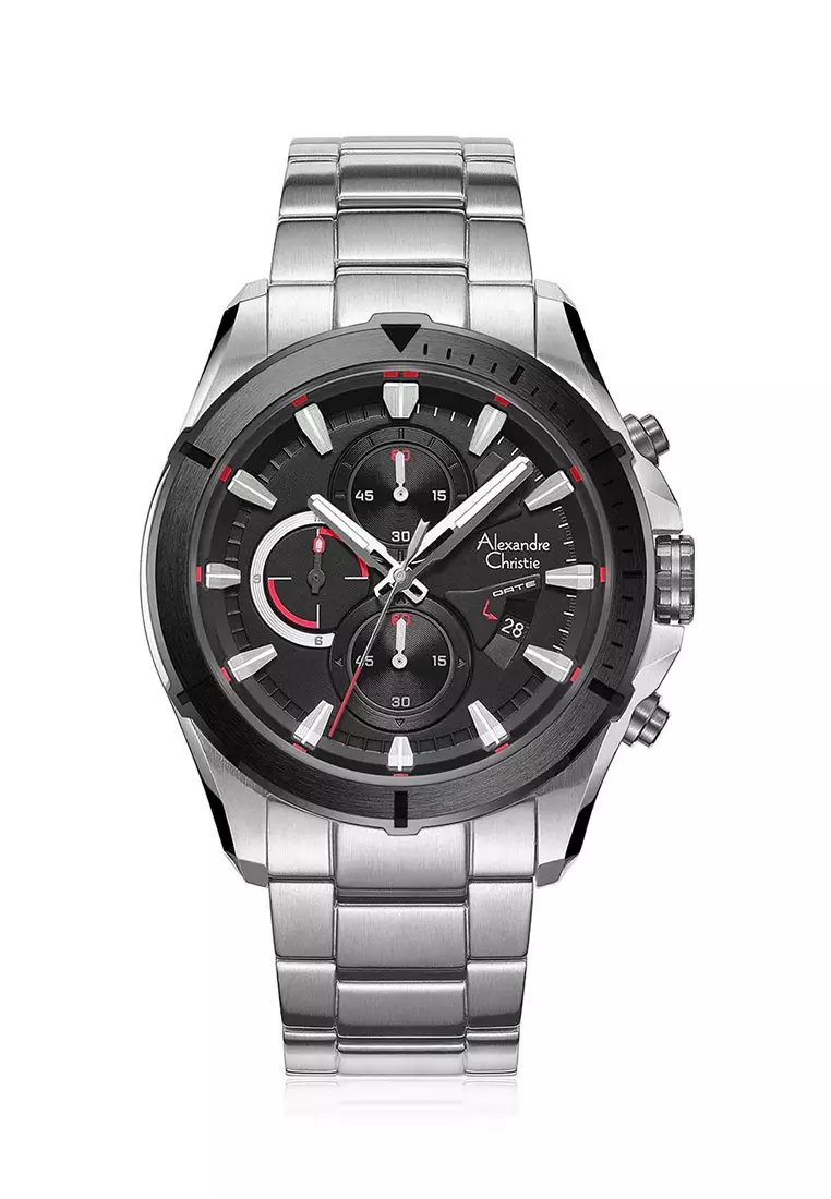 Alexandre Christie Jam Tangan Pria - Silver Black Red - Stainless Steel - 6677 MCBTBBARE