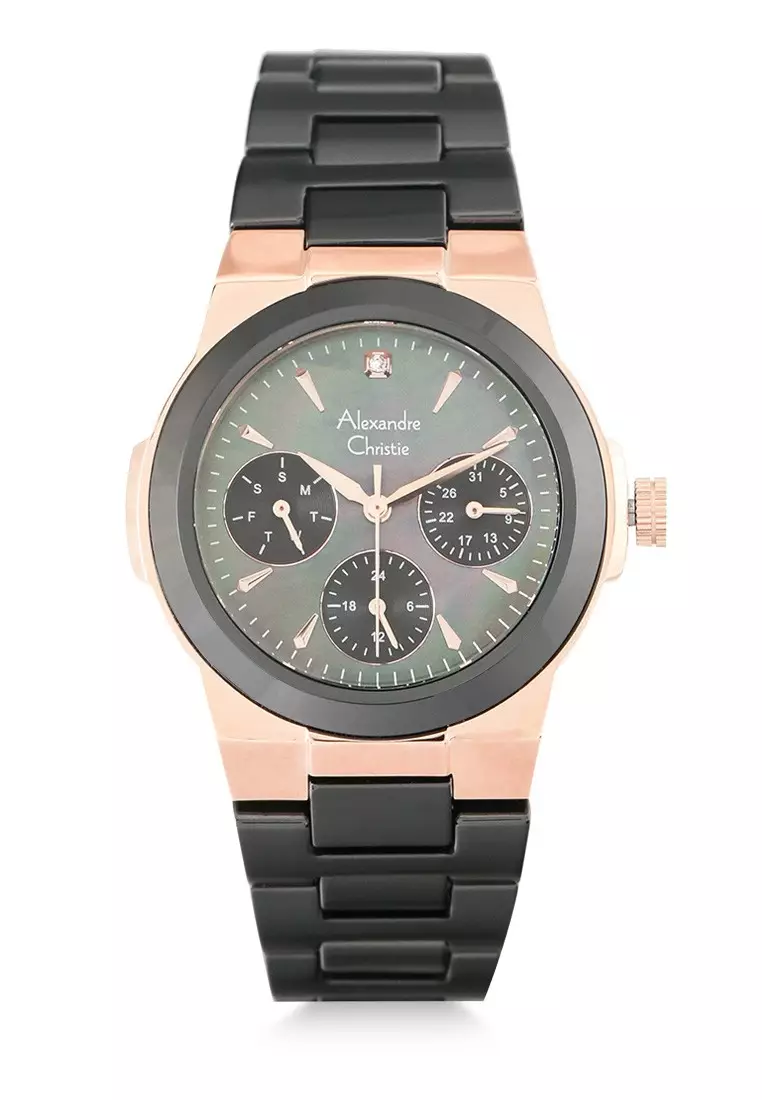 Alexandre Christie Jam Tangan Wanita - Black Rosegold - Keramik - 2862 BFBRGMA