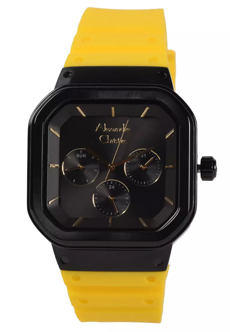 Alexandre Christie - Jam Tangan Wanita - Black - Yellow Rubber Strap - 2811BFRIPBAYL