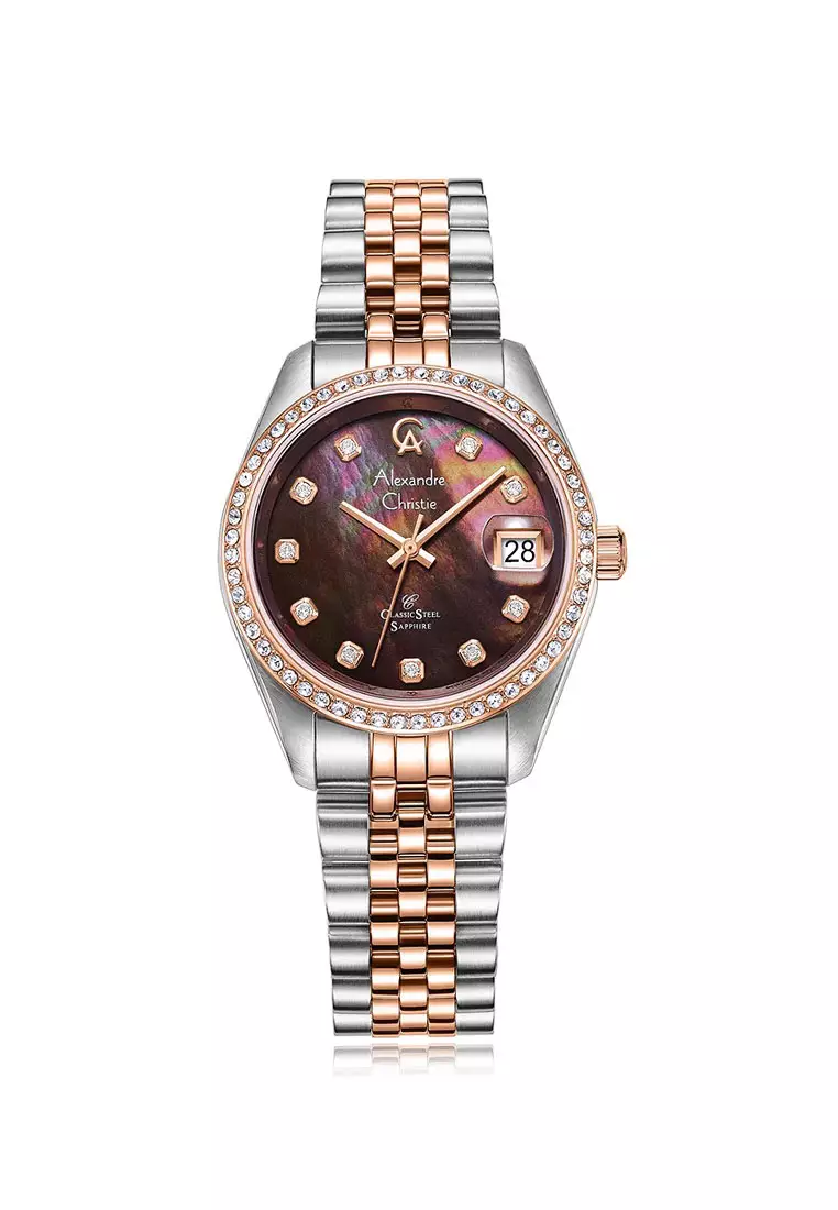 Alexandre Christie Jam Tangan Wanita - Silver Rosegold Brown - Stainless Steel - 5012 LDBTRMO