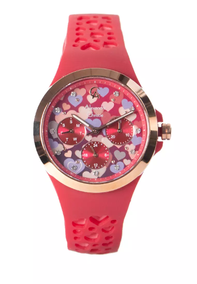 Alexandre Christie Multifunction Boyfriend Band Multifunction Rose Gold Red Dial 36mm - AC2B04BFRRGRE