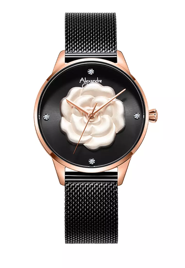Alexandre Christie Passion Ladies Band Quartz Rose Gold Black 35mm - AC2723LHBBRBARG