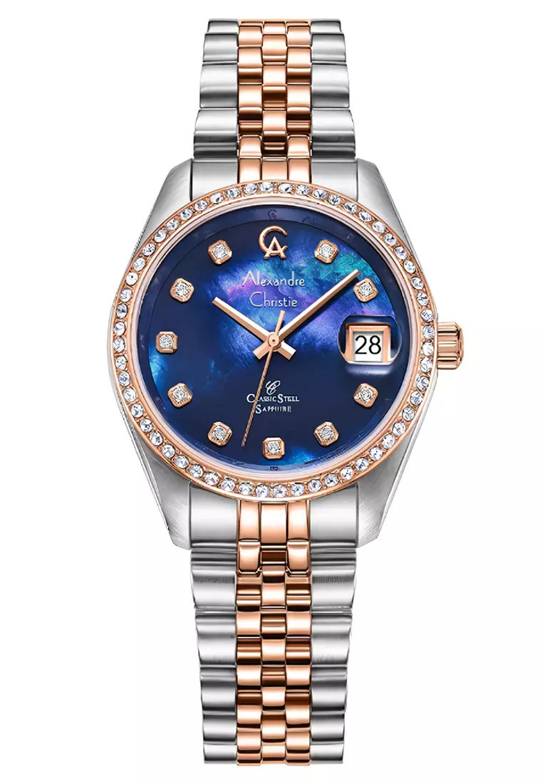 Alexandre Christie Sapphire Glass - Jam Tangan Wanita - Silver Blue - Stainless Steel - 5012 LDBTRMU