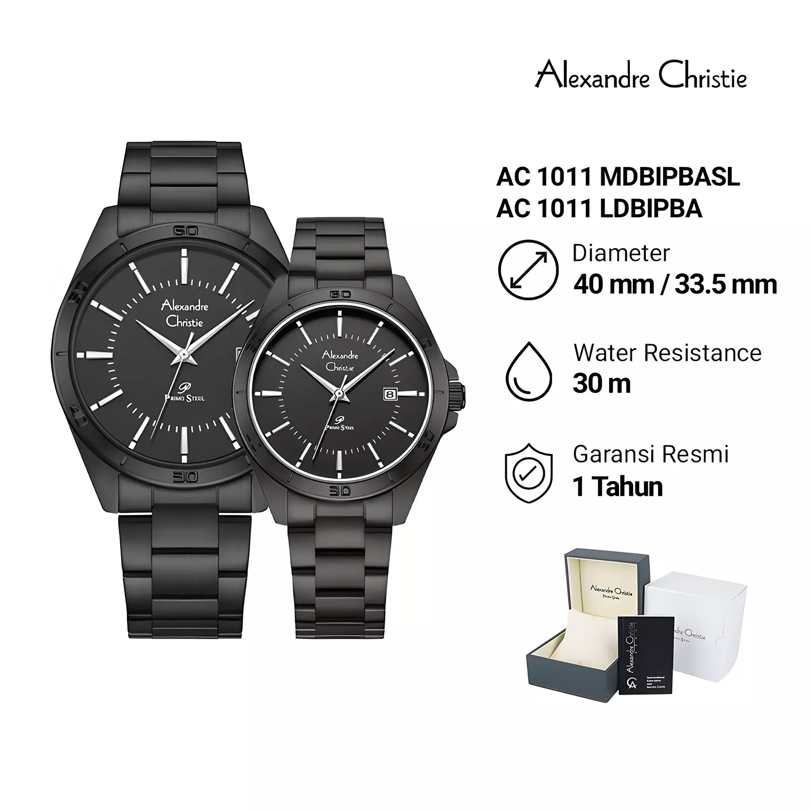 Alexandre ChristieJam Tangan Couple Pria Wanita - Primo Series - Black - Stainless Steel - 1011 MLDBIPBASL2785001.002228000.00