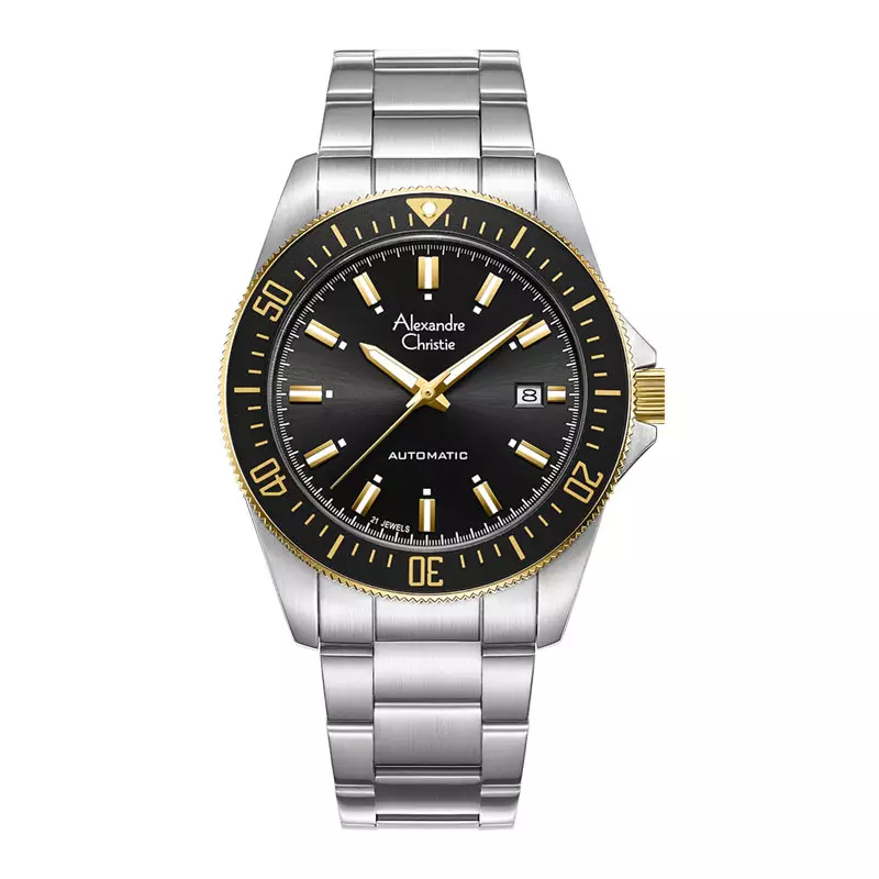 Jam Tangan Pria Alexandre Christie AC 6676 MA BTGBA Men Automatic Black Dial Stainless Steel Strap