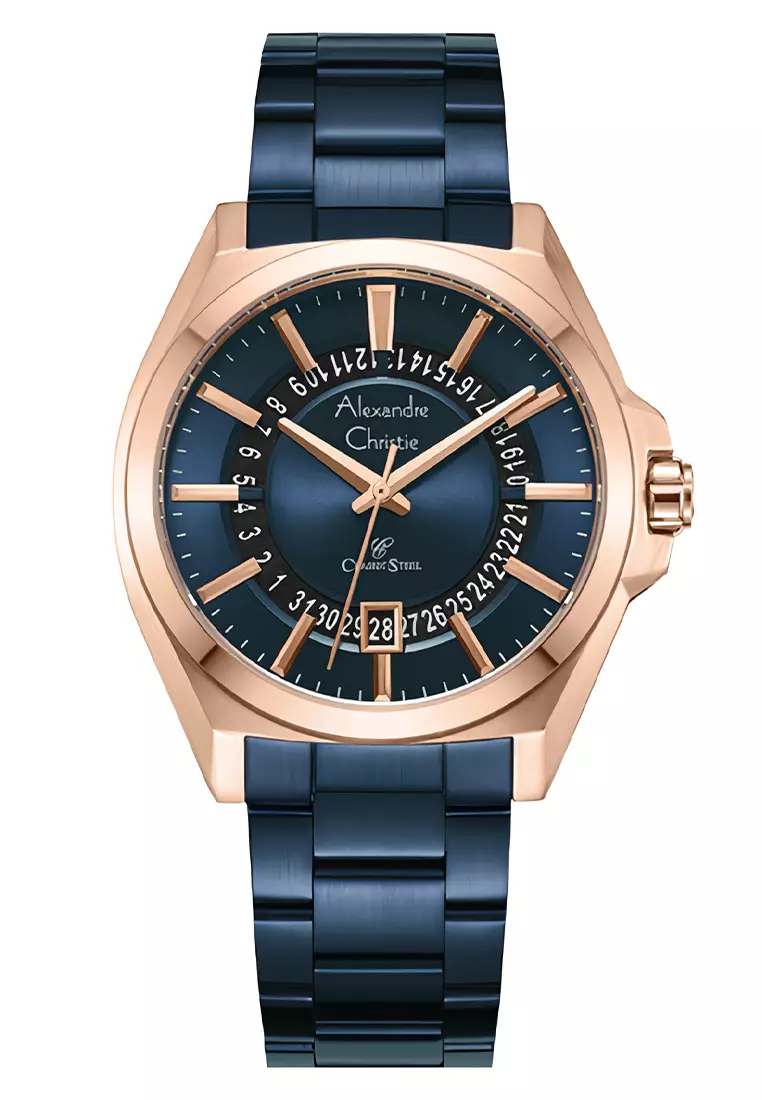 Jam Tangan Pria Alexandre Christie AC 8688 MDBURBU - Rosegold Blue - Stainless Steel