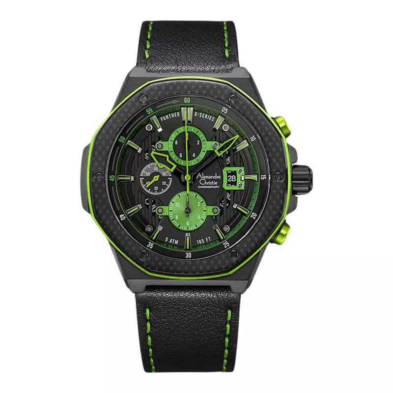 Jam Tangan Pria Alexandre Christie Chronograph AC 6600 MC LIPBAGN Panther X Series Black Dial Black Leather Strap