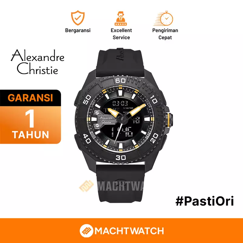 Jam Tangan Pria Alexandre Christie Digi AC 9502 MH RIPBAYL Men Digital Analog Dial Black Rubber Strap