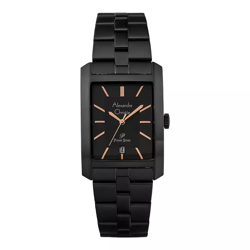 Jam Tangan Pria Alexandre Christie Primo Steel AC 1019 MD BIPBARG Men Black Dial Black Stainless Steel
