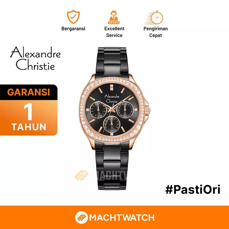 Jam Tangan Wanita Alexandre Christie AC 2B85 BF BBRDG Ladies Black Dial Black Stainless Steel Strap