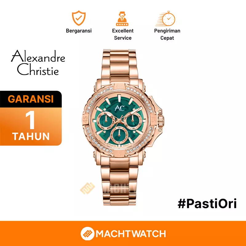 Alexandre ChristieJam Tangan Wanita Alexandre Christie AC 9205 BF BRGGNDR Ladies Green Dial Rose Gold Stainless Steel Strap2200000.001540000.00