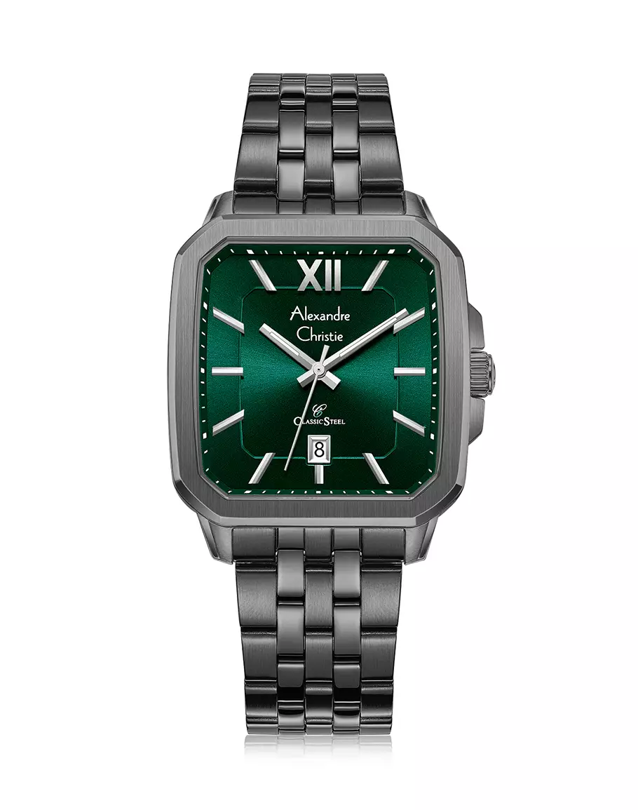 Alexandre Christie Men AC 8704 Stainless Steel Black Green