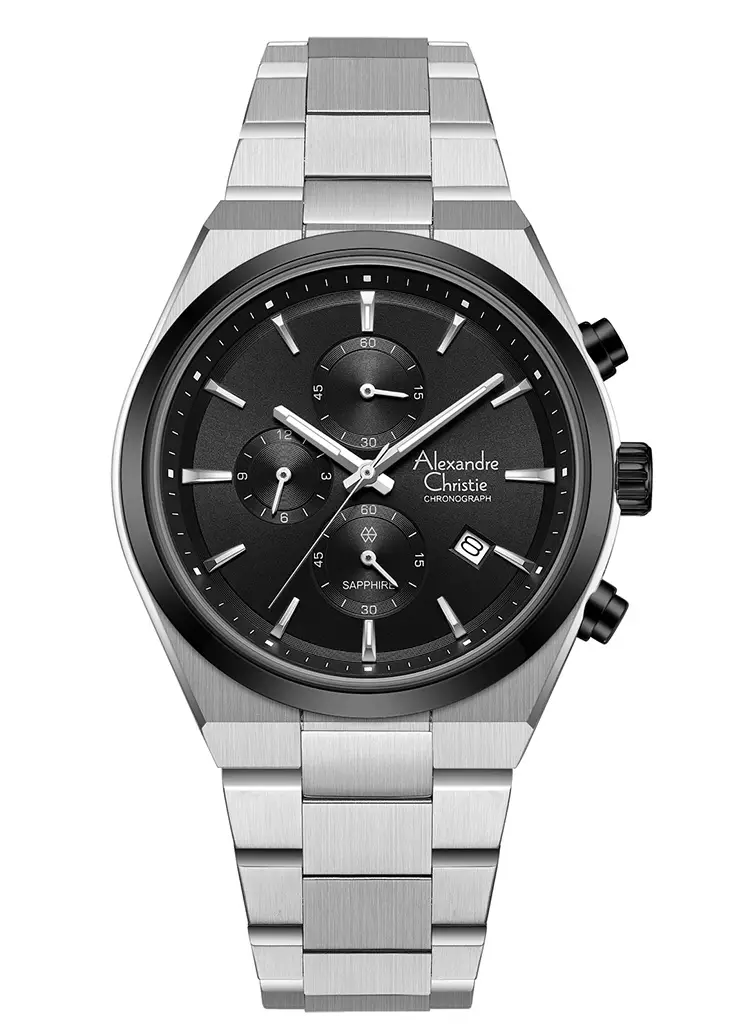 Alexandre Christie Men AC8697 Stainless Steel Chronograph Silver Black
