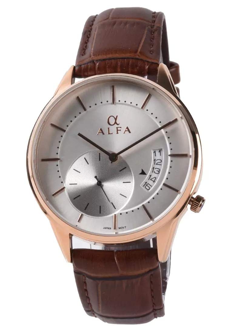 Alfa - Jam Tangan Pria - Rosegold - Brown Leather Strap - 99022M