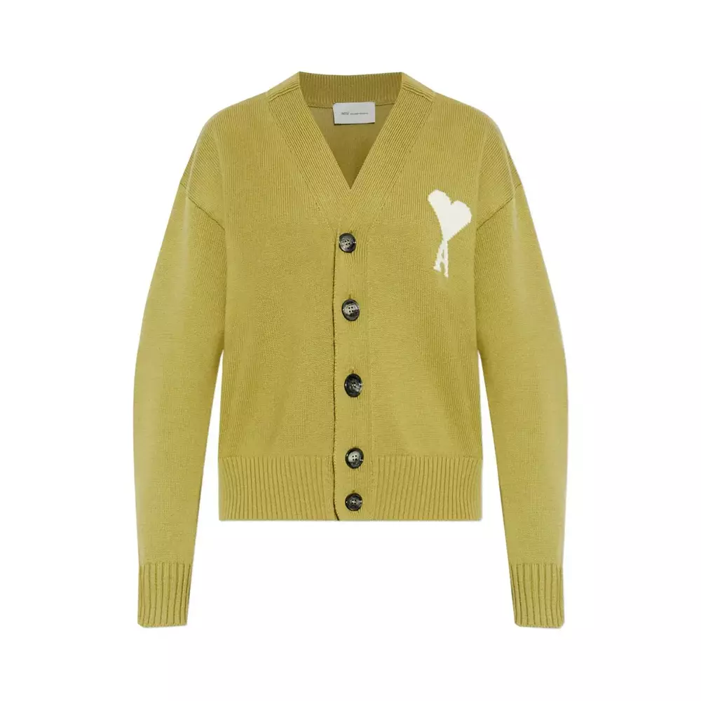 AMI ParisOff White Ami De Coeur Wool Cardigan Green10760000.007150000.00