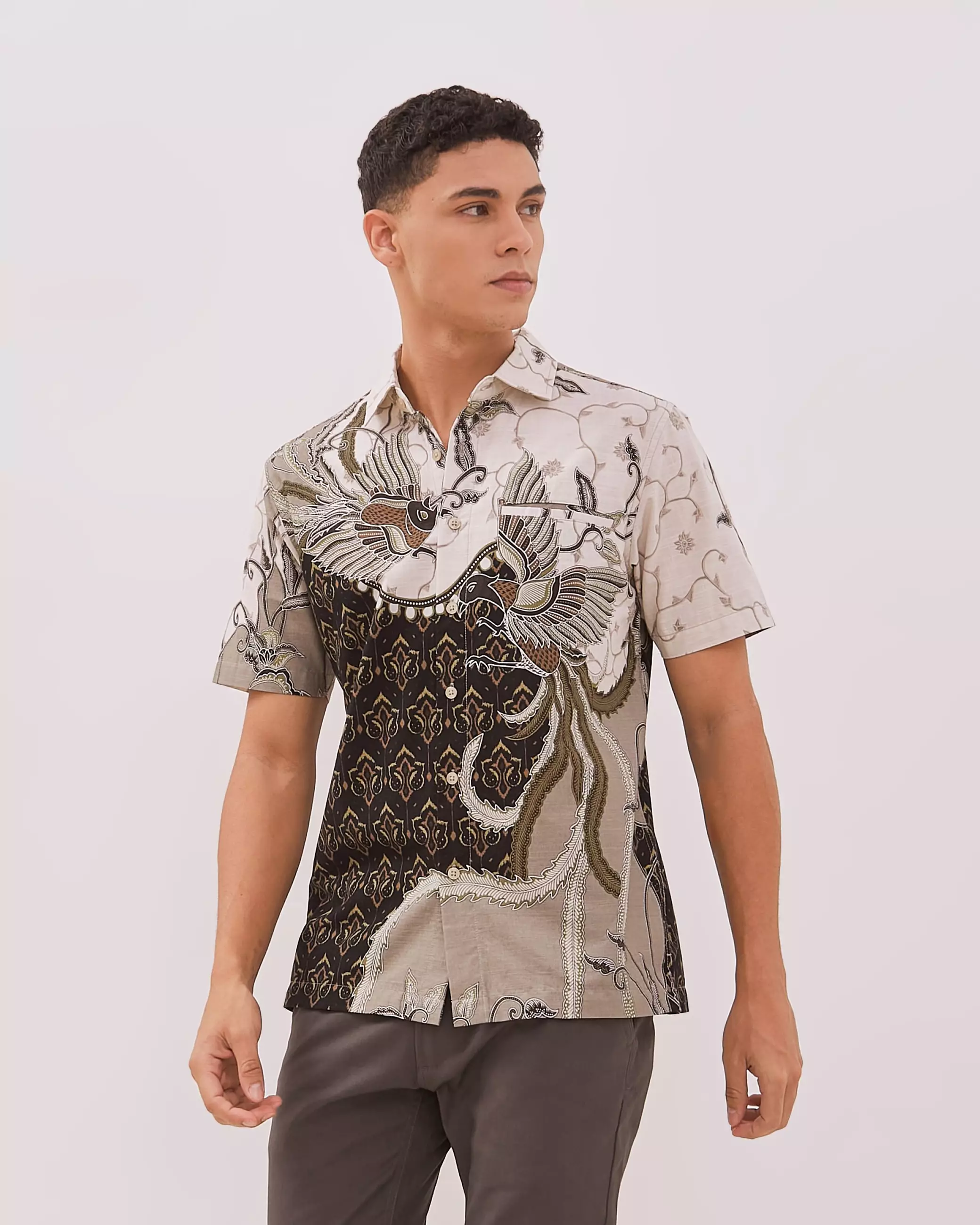 AMK Kemeja Batik Pria Lengan Pendek SHB Boelang Ss Olive