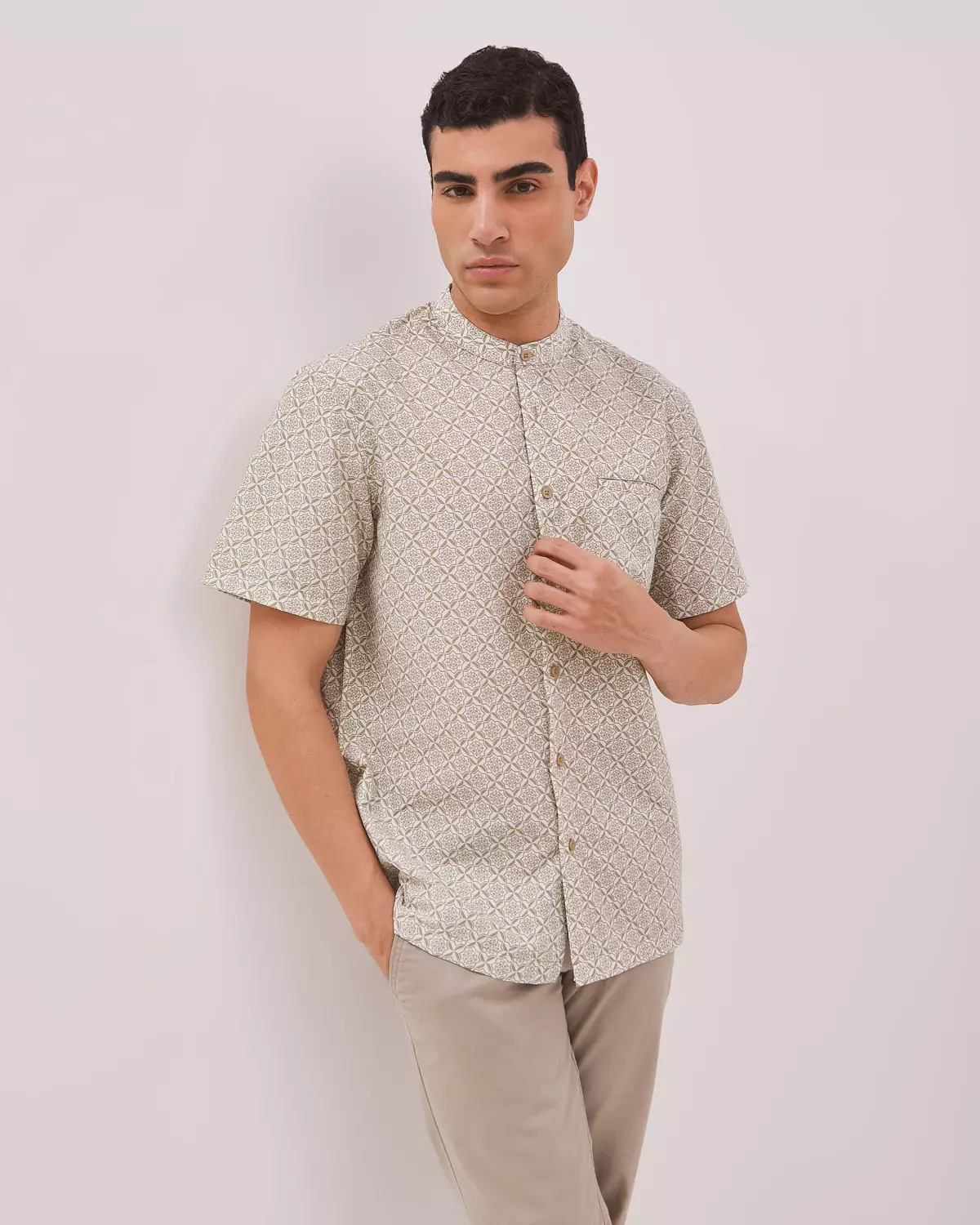 AMK Kemeja Koko Pria Lengan Pendek KK BB Hibran Ss Khaki