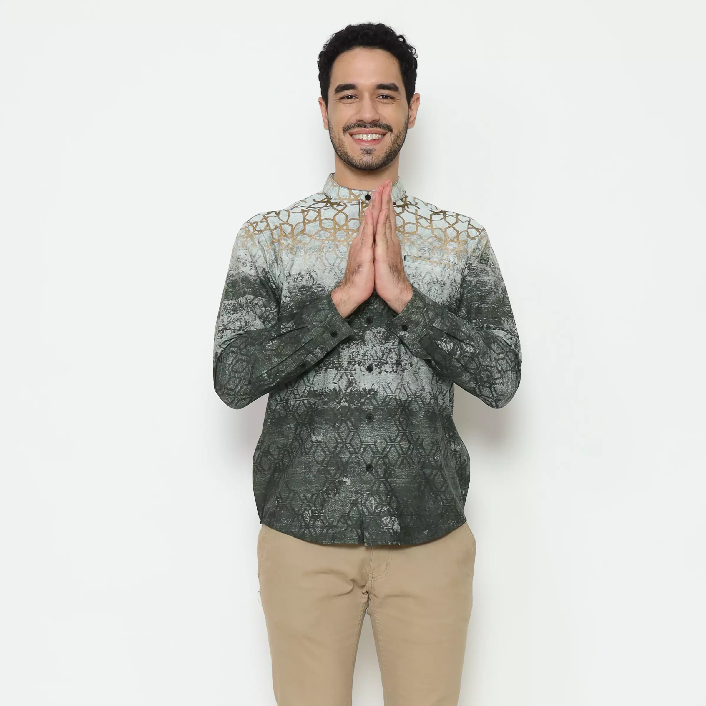 AMK Kemeja Koko Printing Pria Lengan Panjang KK Dilnawas L/s Olive