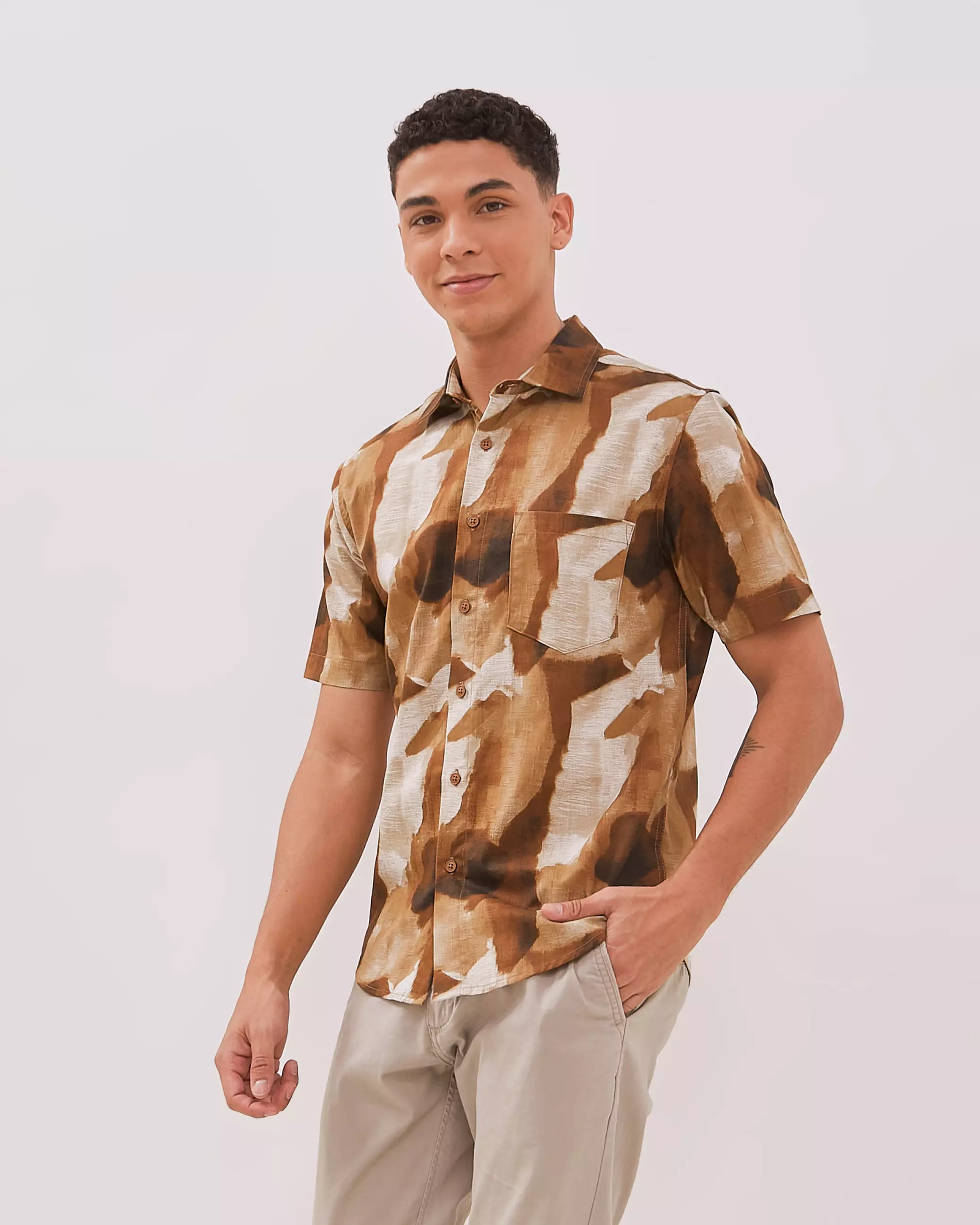 AMK Kemeja Motif Pria Lengan Pendek SHP Niklas Ss Brown