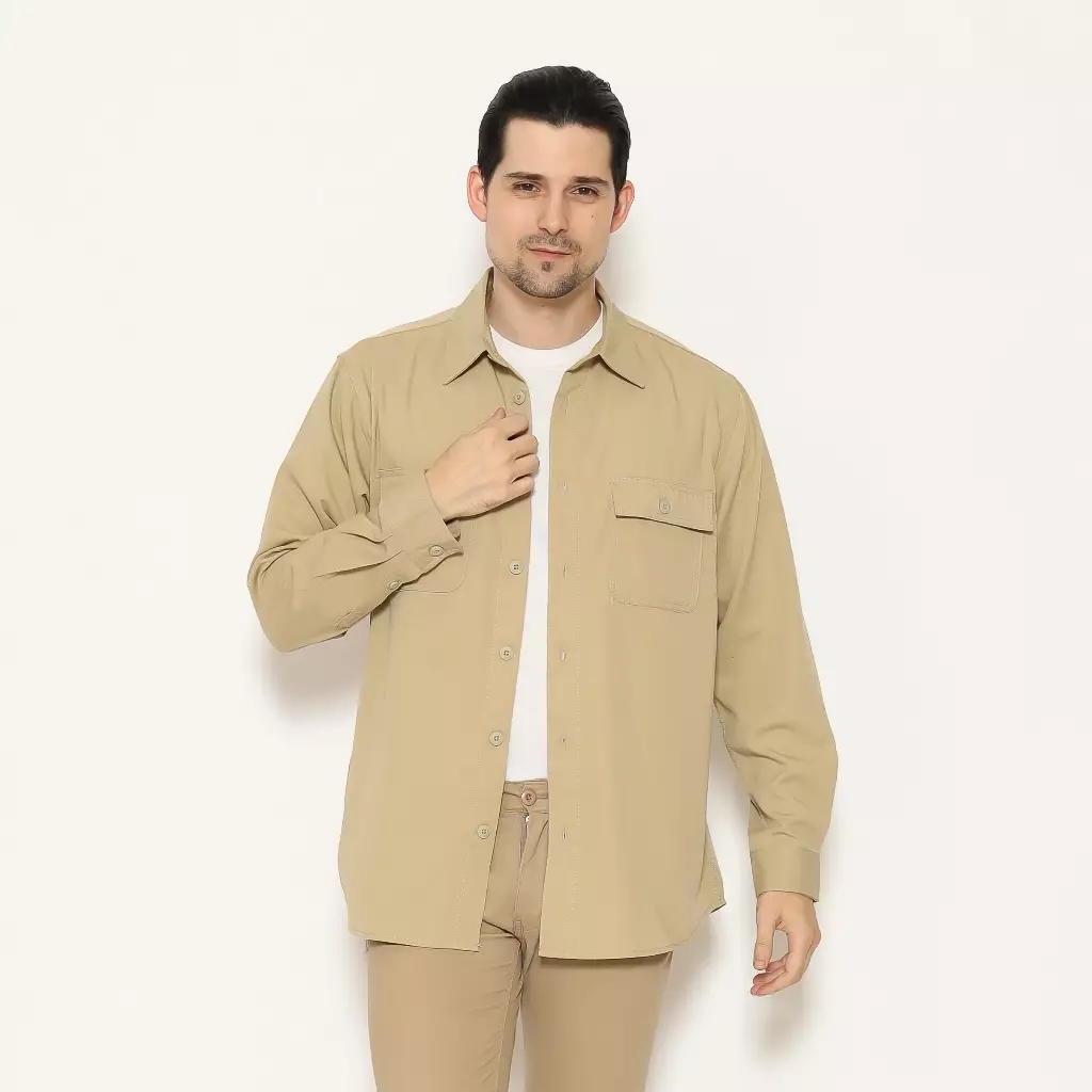 AMK Kemeja Polos Oversize Lengan Panjang SHS GIANT L/S Beige