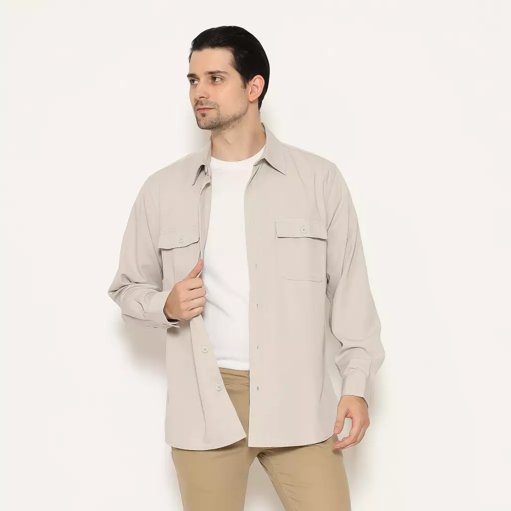 AMK Kemeja Polos Oversize Lengan Panjang SHS GIANT L/S Light Grey